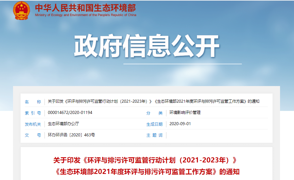 生態(tài)環(huán)境部2021年度環(huán)評與排污許可監管工作方案